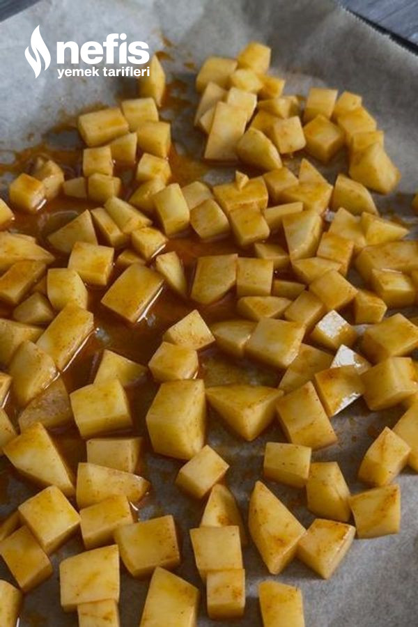 4. Patatesleri yaglı kağıt serili fırın tepsisine aktaralım.