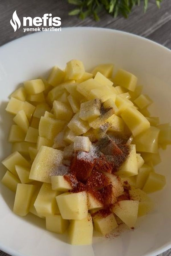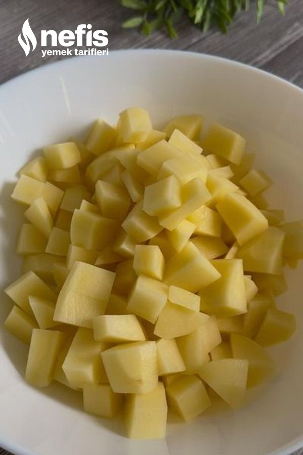 2. Küp doğranmış patatesleri bir kabın içerisine alalım.