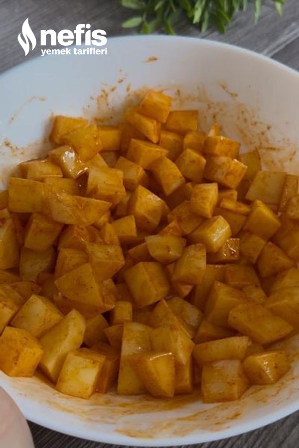 5. Önceden ısıtılmış 200 derece fırında patesleri pişirelim.