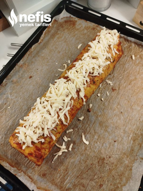 6. Üzerine kaşar rendesi koyup fırınlayalım. Üzerine pul biber, dere otu serpip servis edelim. Afiyet:)