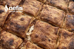 5. Tekrar hamur yağ biçiminde 3 hamurumuzuda açıp tekrar kalan harcı koyup son üç katıda birebir biçimde sıralayıp üstüne yoğurt karışımını sürüp evvelden ısıtılmış fırına verelim.