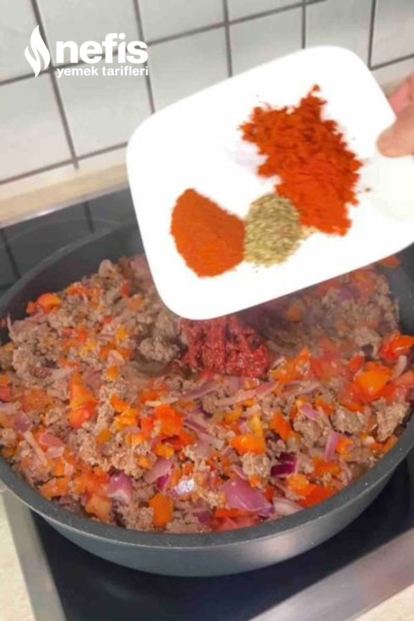 - Kıymayı ekleyip suyunu salıp çekene kadar kavurun.