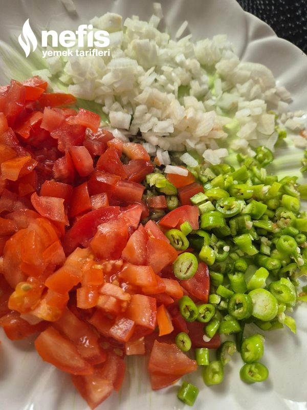 - Sebzeleri küçük küçük doğrayalım. Baharatları ve kıymayı ekleyip karıştıralım.