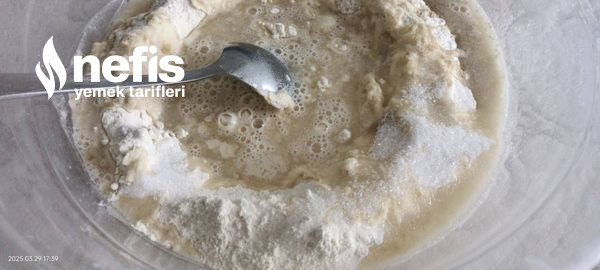 - 50 gr tereyağı yahut katıyağ hariç tüm materyalleri karıştırın ve yoğurun. Yoğurma işi en az 5 dk olmalı. Hamur yumuşak ve kelam dinlemeyen bir hamur oluyor. Bu yüzden kesinlikle orta sıra elinizi unlayın.