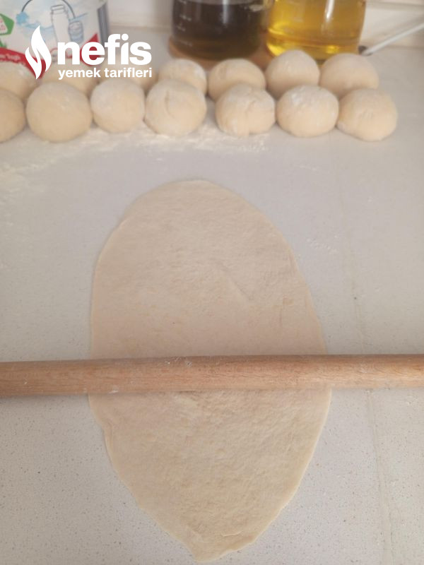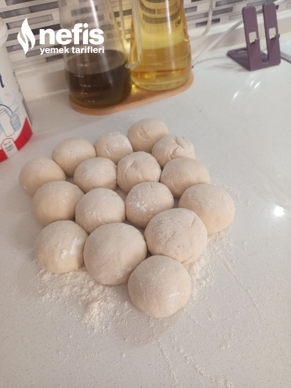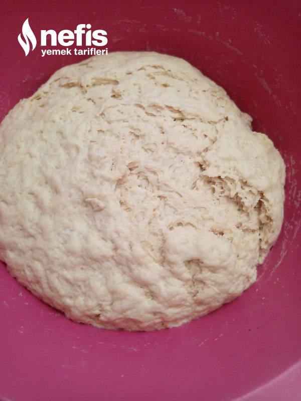 - Hamurumuz mayalandıktan sonra hamuru bir defa daha elimizde toparlıyor havasını alıyoruz ve ikiye bölüyoruz.