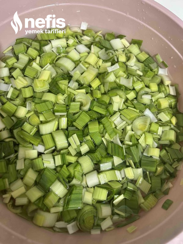 - Öncelikle pırasaları doğrayıp güzelce yıkıyoruz ve bir köşeye alıyoruz.