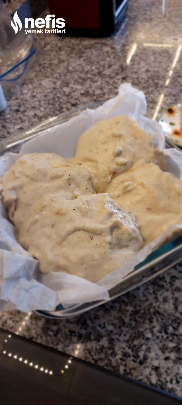 8. Üzerlerine beşamel sosumuzu kaşıkla döküyoruz her yerine gelecek biçimde yayıyoruz. 200 derece fanlı fırında kızarana kadar pişiriyoruz.