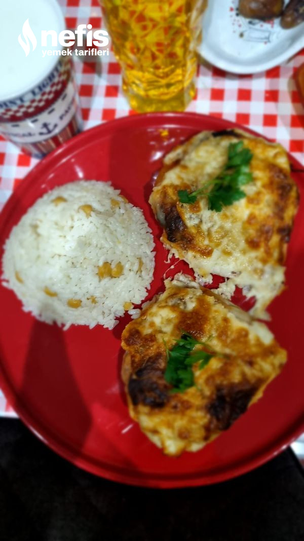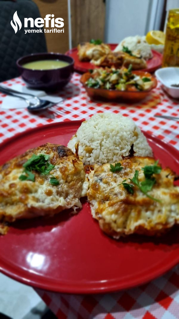 9. Kızarmaya başlayınca fırından alıp üzerlerine kaşar döküp tekrar 3 -4 dakika daha fırına verip sonra pirinç pilavı ve salata ile servis ediyoruz. Afiyet olsun 🌸🎀 instagram: gizmonun_dolabi 🎀🌸🌸.