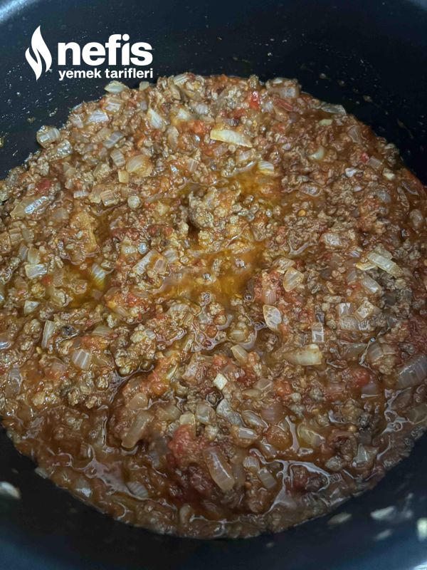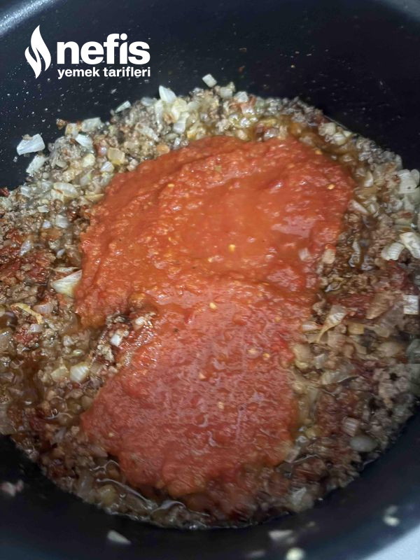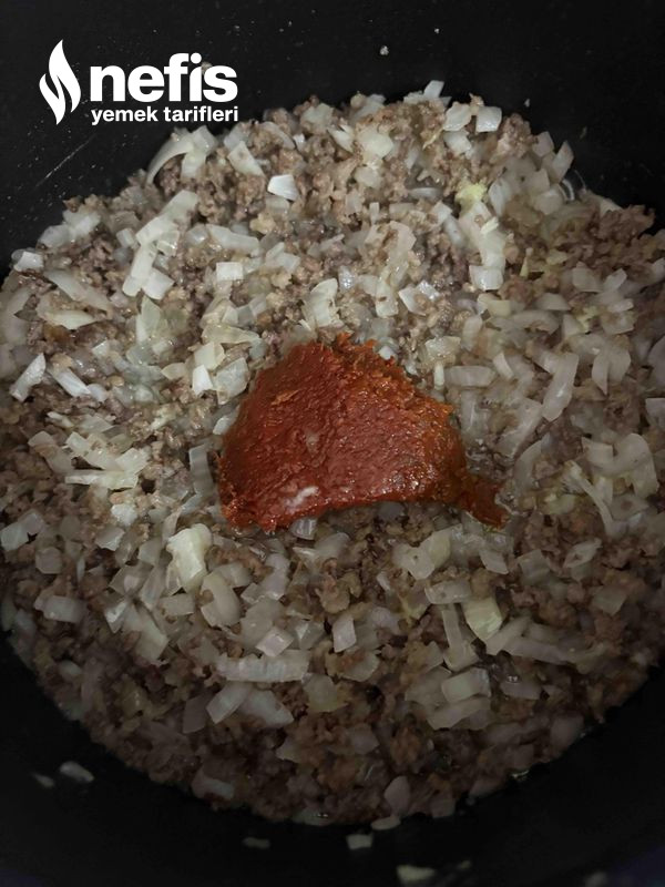 5. Salçamızı ekleyelim ve karıştıralım. Rendelediğimiz domatesleri ekleyelim.