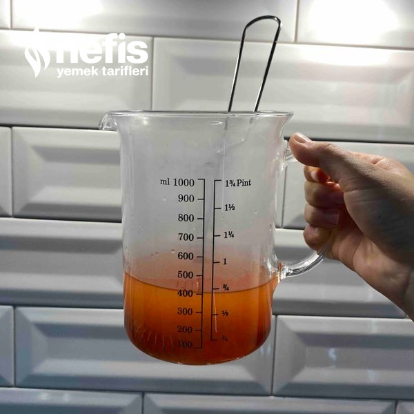 - Ayrı bir derin tabak da salçamızı,1 yemek kaşığı sıvı yağ ve tuzumuzu koyuyoruz üzerine sıcak su ekleyip karıştırıyoruz.
