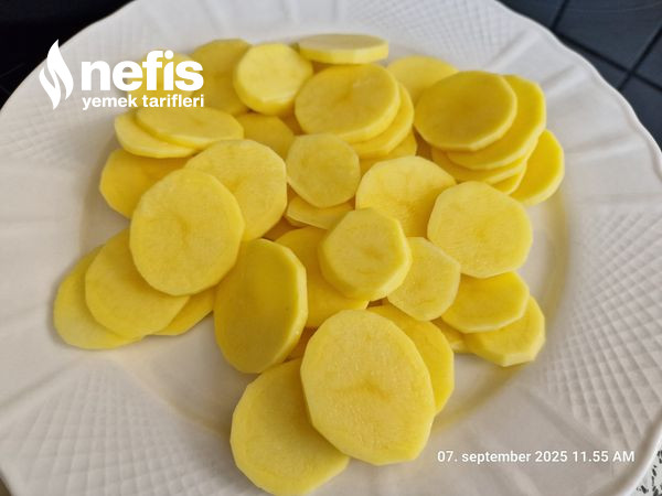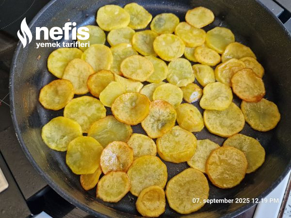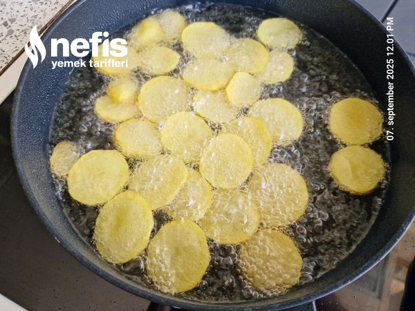 1. Patatesler soyulur halka yahut kare doğranarak tavada yağda kızartılır ve kenarda bekletilir.