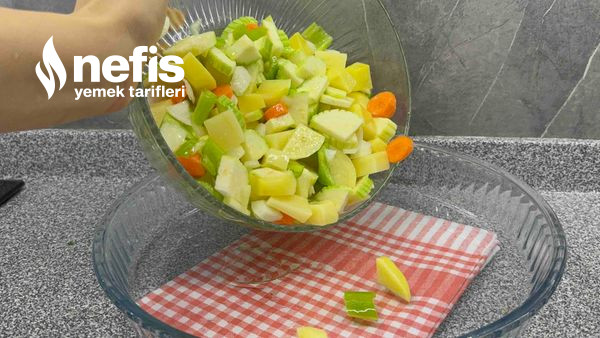 - Sebzeleri yemeklik küp küp doğrayalım.