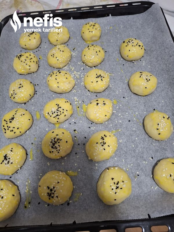 4. Hamurdan ceviz büyüklüğünde modüller koparıp yağlı kagıt serili tepsiye yerleştirelim.