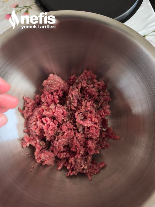 - Bir kaba kıymamızı alalım. Yumurta galeta unu ekleyip yeterlice karıştıralım.