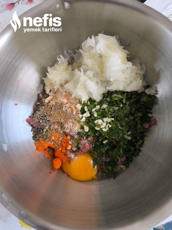 - Daha sonra rendeleyip suyunu sıktığımız soğanı ve yeniden rendelediğimiz sarımsağı ekleyelim. Güzelce karıştıralım.