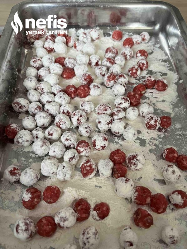 - Çok minik modüller alınıp yuvarlanır ve unladığımız tepside her tarafı una bulanır.