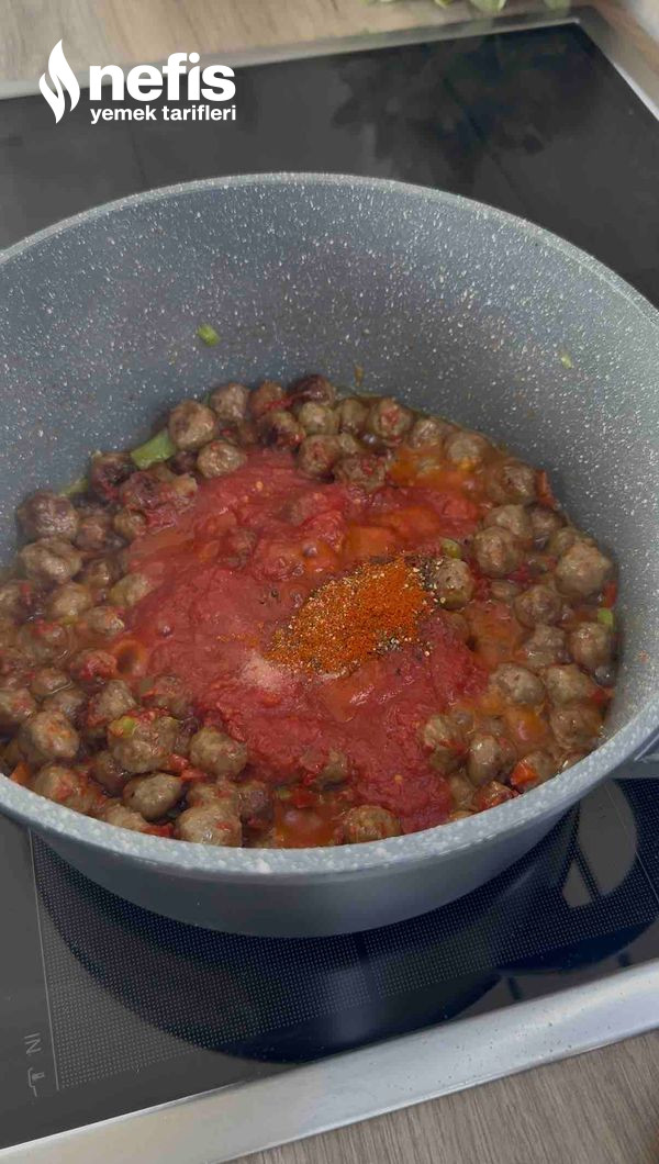 - İnce kıyılmış biber, tereyağı ve salça ekleyip bi tıp daha kavurun.