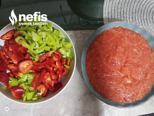 - Biberleri yıkayıp ortadan ikiye bölün ve ince ince (çok da ince olmayacak şekilde) doğrayın.