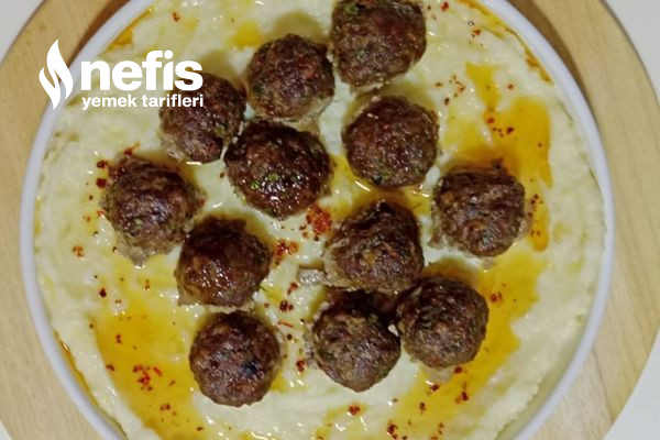 6. Servis tabağına evvel patatesli harcı yayın üzerine köfteleri dizin.