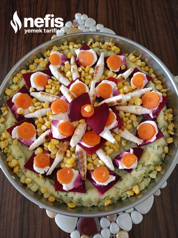 9. Sonra yeniden pancarlı labne havuç konulur ,sırayla sonra boşluk olan yerlere mısır konulur ,işlem bu türlü devam eder herkese afiyet olsun.