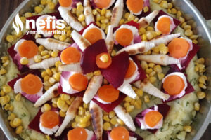 9. Sonra yeniden pancarlı labne havuç konulur ,sırayla sonra boşluk olan yerlere mısır konulur ,işlem bu türlü devam eder herkese afiyet olsun.