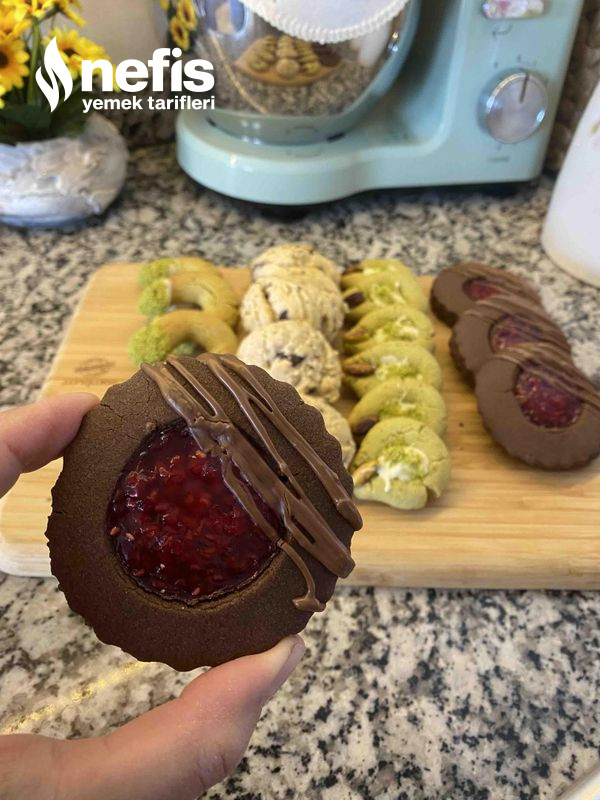 6. Pişen kurabiyelerin birinci soğuğu çıktıktan sonra dilediğimiz üzere süsleyelim ben çikolatalar ve frambuaz sos kullandım sizlerde dilediğinizi kullanabilirsiniz beğenmeyi kaydetmeyi ve benimle paylaşmayı unutmayın şimdiden sevgiler 💐