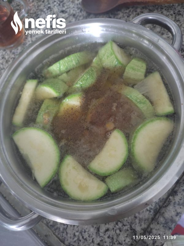 - Sarımsağı ve kabakları doğrayıp, ekliyoruz beş dakika kavuruyoruz.
