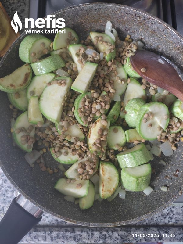 - Mercimekleri yıkayıp, ekliyoruz iki dakika daha kavuruyoruz sıcak suyu ekliyoruz kısık ateşte pişiriyoruz.