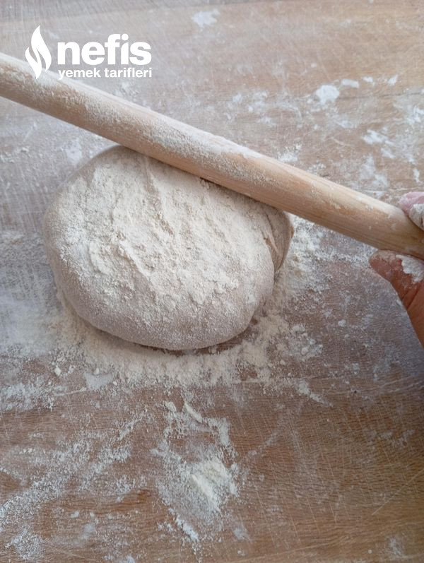 5. Bezelerden bir adedini alarak unluyoruz ve oklava yardımıyla açıyoruz.