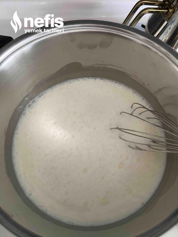 - İlk etapta muhallebimizi hazırlıyoruz sütü, şekeri ve unu uygun bir tencereye alıyoruz kıvam alana kadar karıştırıyoruz.