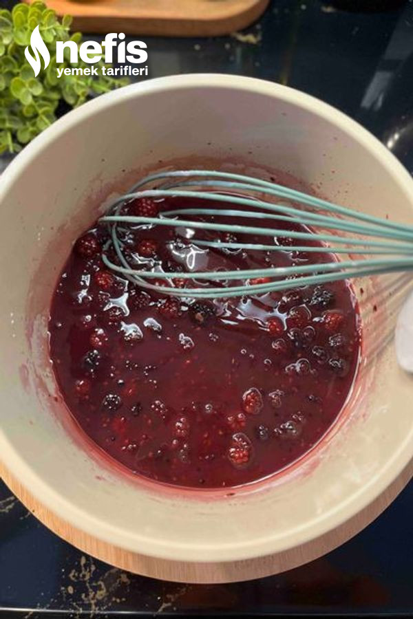 6. Meyveli sosu için tüm materyalleri tencereye ekleyip karıştırarak pişirelim.
