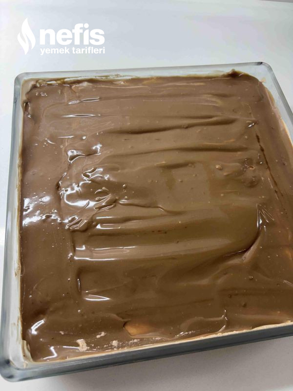 - Soğuyan kekimizin üstüne ekleyelim spatula yardımı ile düzleyelim dolaba atalım 3-4 saat bekletelim.