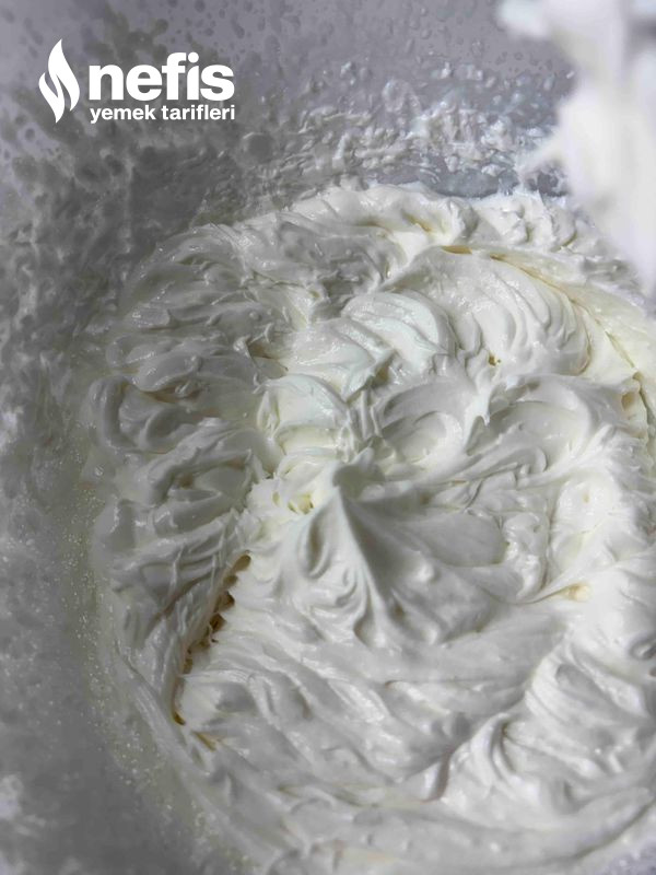 - Üzeri için; krem şantiyi ve sütü ekleyip koyu kıvama gelene kadar çırpalım.