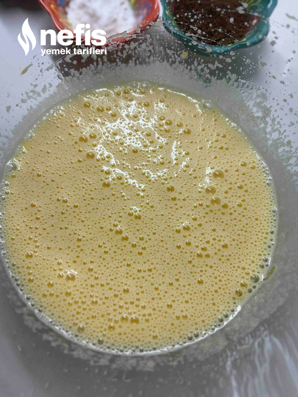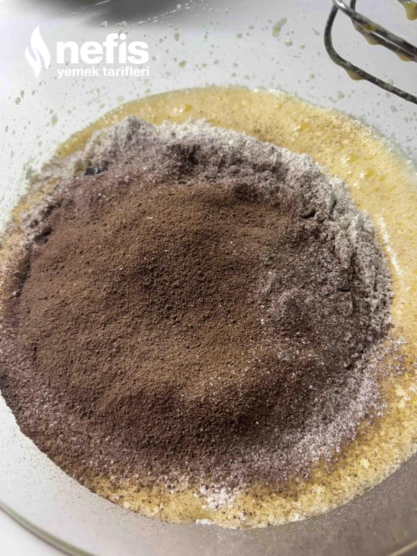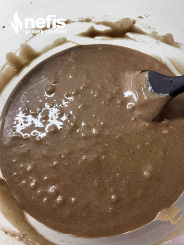 - Yağ,süt,elenmiş un, kakao, kabartma tozu ve vanilini ekleyelim. Güzelce çırpalım.