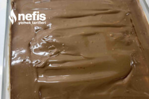 - Soğuyan kekimizin üstüne ekleyelim spatula yardımı ile düzleyelim dolaba atalım 3-4 saat bekletelim.
