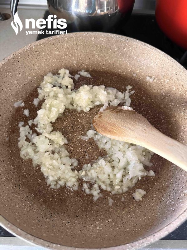- Soğan ve sarımsağı yap ile tavaya alıp pişirin.
