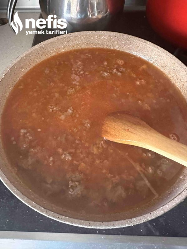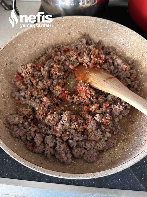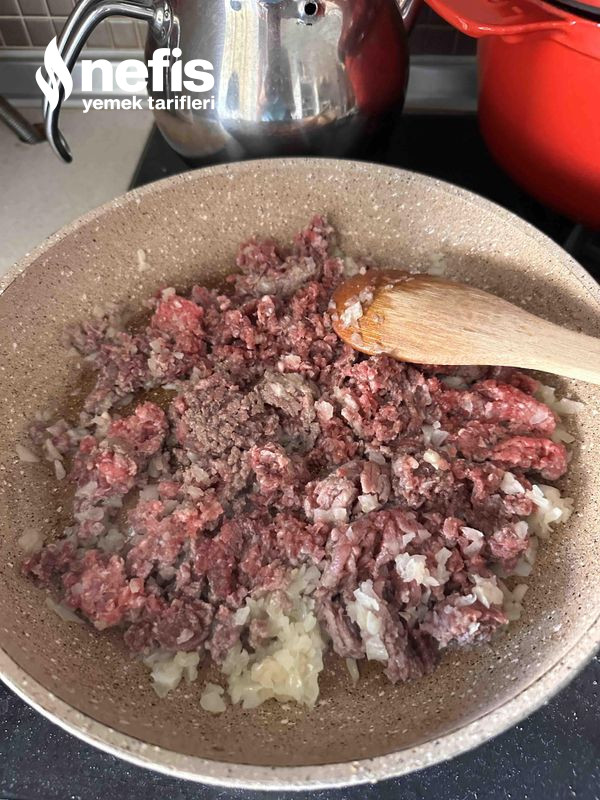 - Soğanlar kavrulduktan sonra kıymayı ekleyin ve biraz daha kavurun.