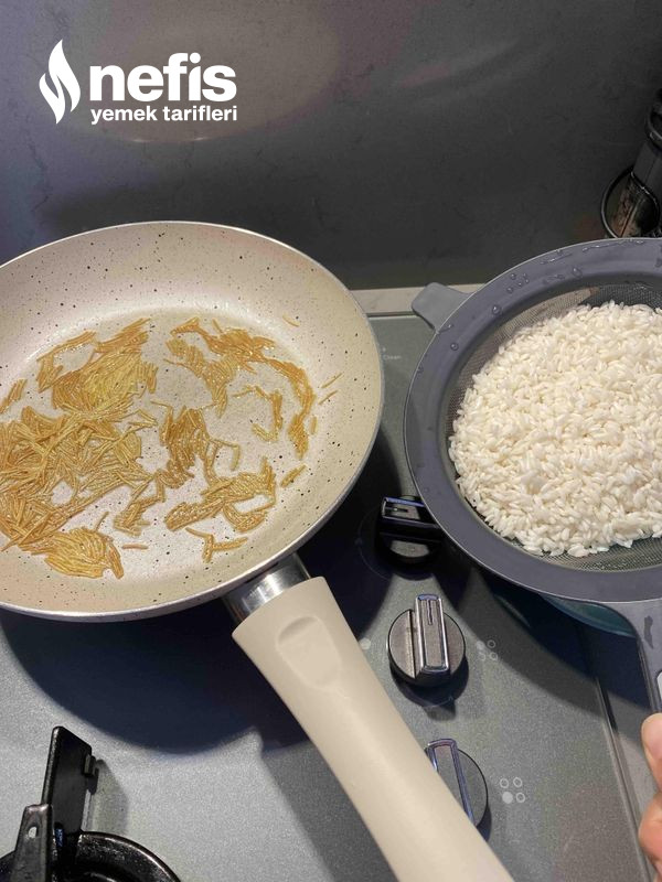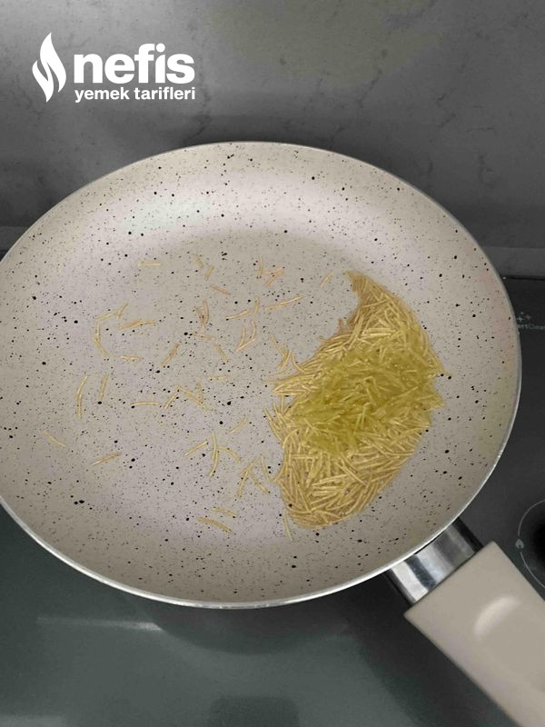 - Zeytinyağını ocağa koy üzerine tel şehriyeyi dökün.