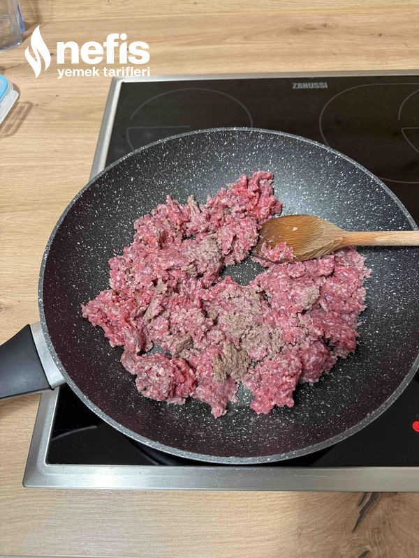 - Kıymayı geniş bir tavaya alıp yüksek ateşte güzelce kavuralım.