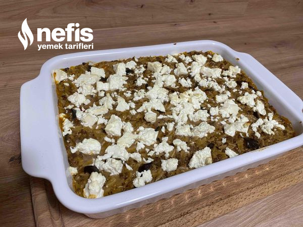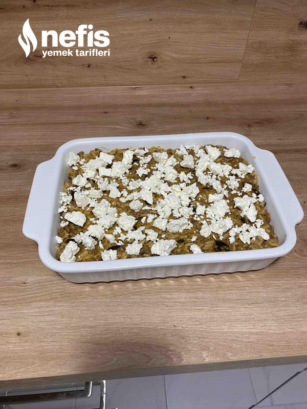 - Yemeğimizi uygun bir fırın kabına alıp üzerine peyniri ufalayıp serpelim.