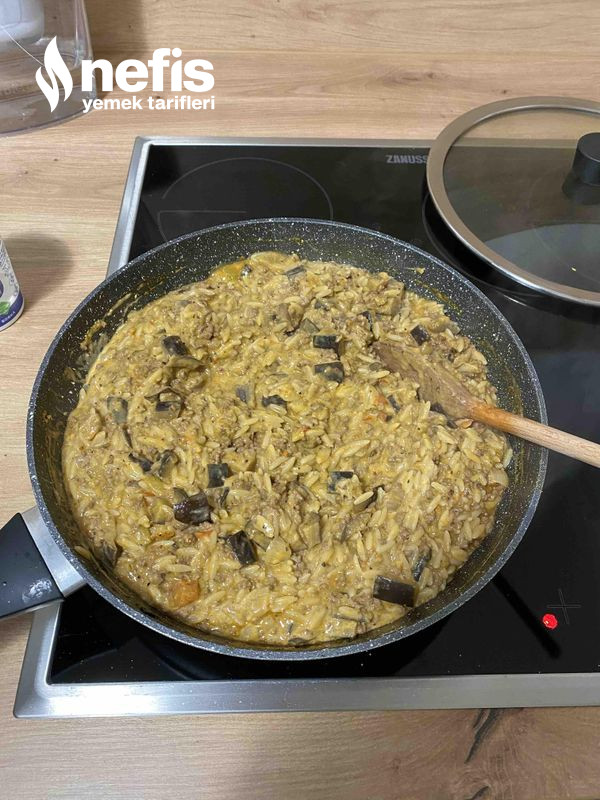 - Şehriyeyi ekleyip tekrar kapağı kapatalım. Orta ara karıştırıp 15dk daha pişirelim. Suyunu çekerse su ekleyebilirsiniz. Bu ortada fırını 200 derece açalım ki ısınsın.