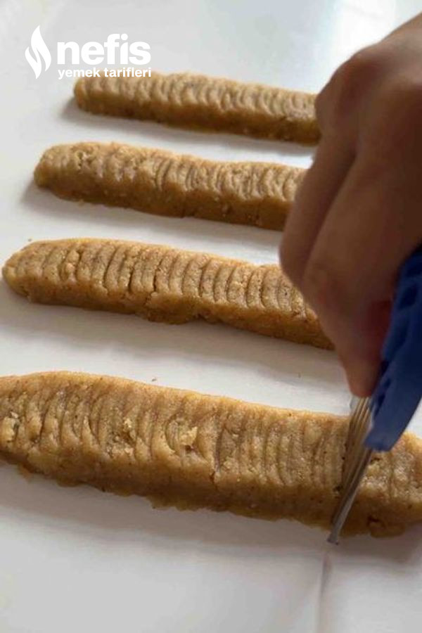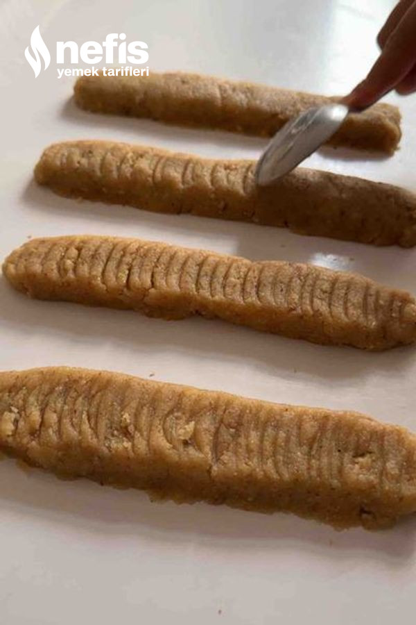 - Un hariç tüm hamur materyallerini karıştıralım ,en son unu ekleyip yoğuralım ve elimizle bastırarak uzun şerit yapalım .