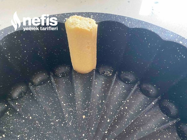 15. Dolaptan çıkan tatlımızı bir servis tabağına dikkatlice karşıt çevirip sallayarak çıkartalım. Tatlımız çok kolay halde çıkıyor.