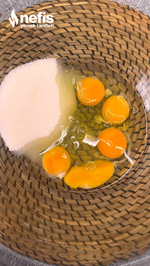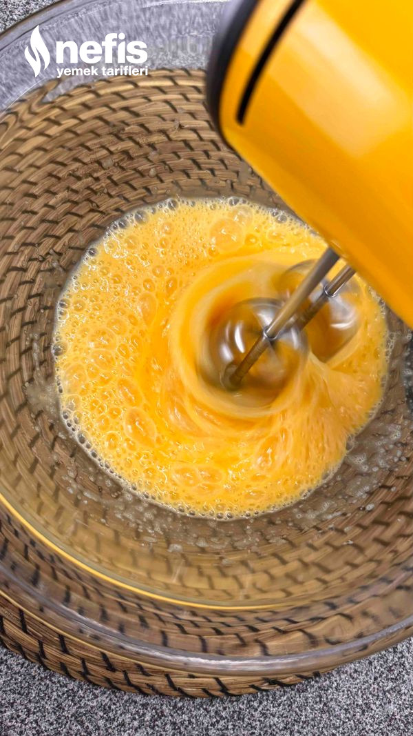 2. Yumurta ve toz şekeri köpük köpük olup beyazlaşana kadar yüksek evrede çırpalım.