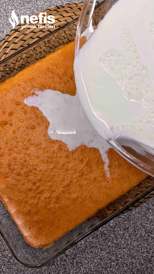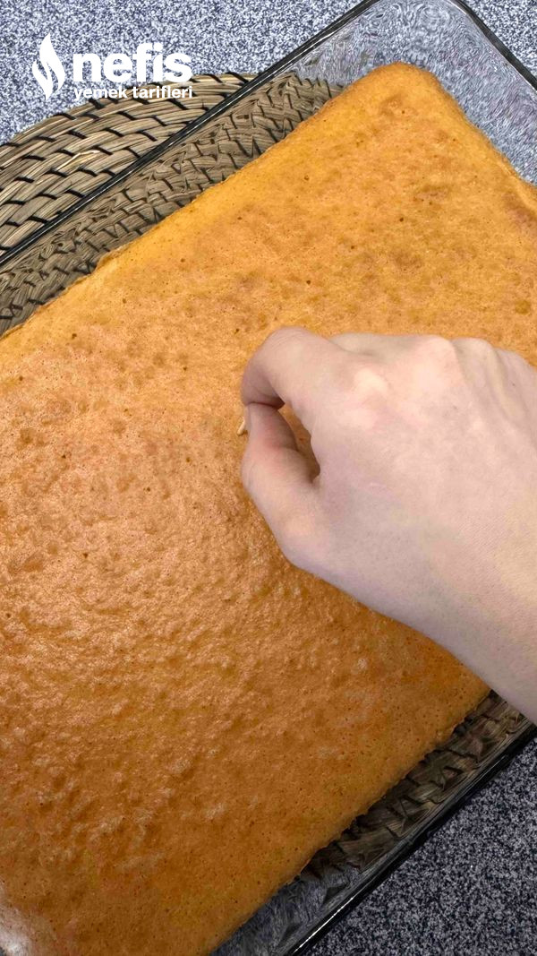 7. Pişen kekimizin birinci sıcağı çıkınca (10 dakika beklettikten sonra) kurdanla delikler açıp şerbeti çektirerek dökelim.