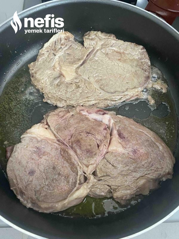 - Etlerimizi mühürlemek için tavaya yağı koyuyoruz ,ısınan tavaya etleri ek edip mühürlüyoruz.
