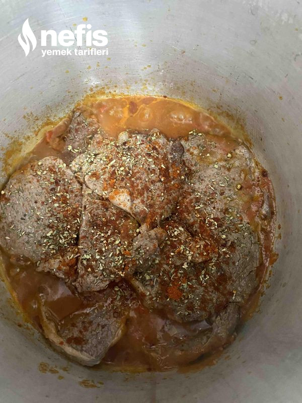 - Yaptığımız sosu döküyoruz, üzerinde etleri yerleştiriyoruz ve sıcak su ek edip ağzını kapatıyoruz.