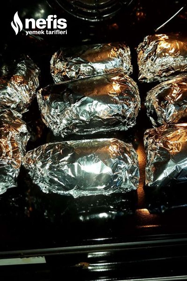 1. Patatesleri güzelce yıkayıp kurulayalım, birinci evvel fırın kağıdına saralım sonra da aliminyum folyoya saralım.