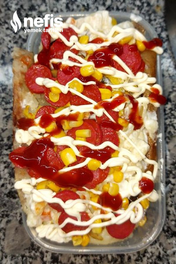 5. Üzerine birinci evvel zeytinleri sonra makarnayı sosisi mısırı ek edelim, isteğe nazaran daha çok gereç ekleyebiliriz ketçap mayonezle servis edebiliriz afiyet olsun.