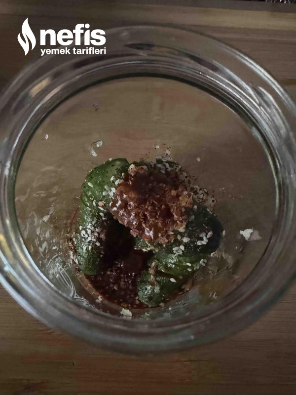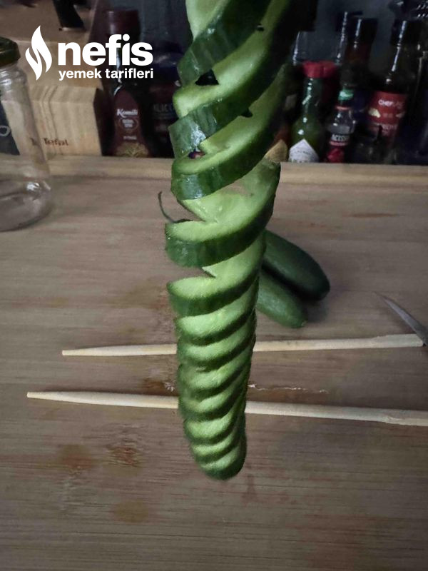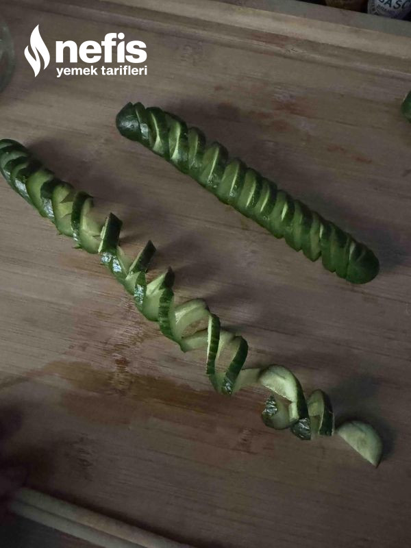 4. Akordiyon halini alan salatalıkları bir kavanoz içerisine alalım.